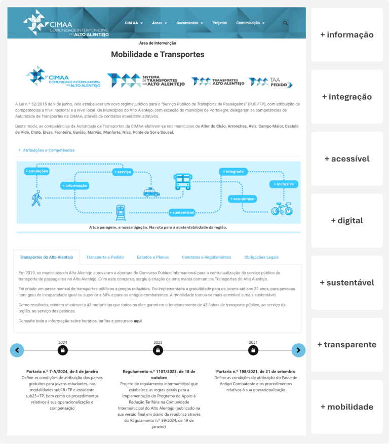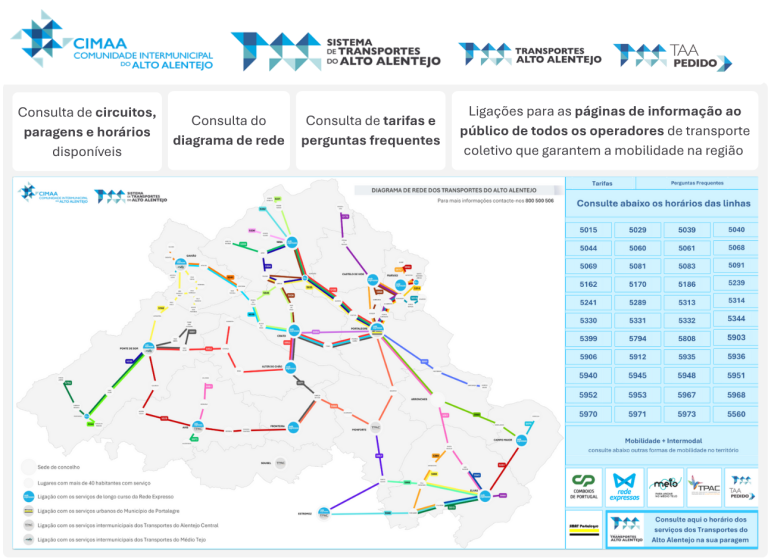 A Comunidade Intermunicipal do Alto Alentejo (CIMAA) disponibiliza a partir de hoje, um novo portal dedicado à Mobilidade e Transportes no seu site: com uma imagem renovada, conteúdos reorganizados e novas funcionalidades ao serviço dos cidadãos.